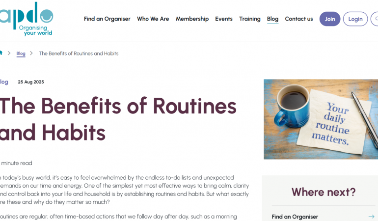 Check out my new blog post for APDO (the Association of Professional Declutterers and Organisers) on a topic that underpins so much of the work I do – routines and habits.